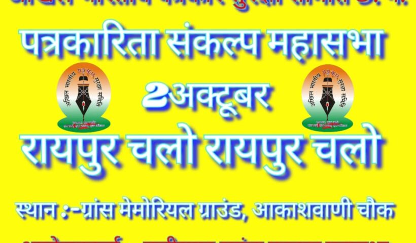 अखिल भारतीय पत्रकार सुरक्षा समिति का आह्वान अधिक से अधिक संख्या में पत्रकार 2 अक्टूबर को रायपुर पहुँचे।अखिल भारतीय पत्रकार सुरक्षा समिति से जुड़े प्रदेश…