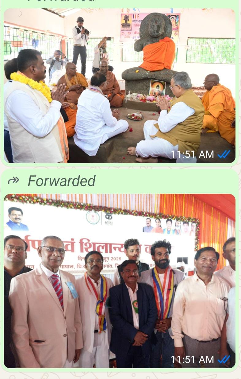 कोंडागांव, 01जून ,वेब वार्ता/ मुख्यमंत्री श्री विष्णुदेव साय और विधानसभा अध्यक्ष डॉ. रमन सिंह ने रविवार को बुद्ध जयंती के अवसर पर कोंडागांव जिले के भोंगापाल में भगवान गौतम बुद्ध की पूजा-अर्चना कर प्रदेश की जनता की सुख-समृद्धि एवं खुशहाली की कामना की। इस दौरान बोधगया से पधारे बौद्ध साधुवृन्द भंते अश्वजीत महाथेरा, भंते ज्ञानवंश थेरो, भंते शीलवंश थेरो, भंते प्रमोद एवं भंते डीन वियतनाम द्वारा बुद्धम शरणम गछम मंत्रोच्चार के बीच विधिवत पूजा-अर्चना करवाया गया। ज्ञात हो कि भोंगापाल में 6 वीं शताब्दी का प्राचीन बुद्ध प्रतिमा इस क्षेत्र दर्शनीय स्थल है। इस मौके पर विधायक केशकाल श्री नीलकंठ टेकाम सहित क्षेत्र के जनप्रतिनिधियों के अलावा कमिश्नर बस्तर श्री डोमन सिंह, आईजी श्री सुंदरराज पी., कलेक्टर नुपुर राशि पन्ना, एसपी श्री वाय अक्षय कुमार पूज्य भंते सुरई ससाई देश भर से आए करीब 200 भिक्षु गण कार्यक्रम की संयोजक अनिल खोबरागड़े सहित रायपुर कमिश्नर महादेव कावरे, दिलीप वासनीकर विनोद खांडेकर, डॉ कांबले, अनिरुद्ध कोचे ,शैलेश badge,,सुनील wandre, रविन्द्र रामटेके, भोजराज गैरखेड़े शैलेन्द्र डोंगरे,समिति और अन्य अधिकारी तथा बड़ी संख्या में छत्तीसगढ़ सहित महाराष्ट्र और मध्य प्रदेश से आये हजारों बौद्ध धर्म के अनुयायी मौजूद थे।