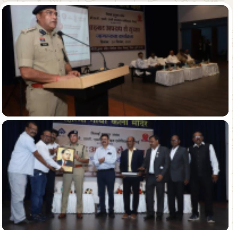 भिलाई 25 सितम्बर वेब वार्ता..भिलाई इस्पात संयंत्र एस.सी/एस.टी. एम्पलाईज एसोसिएशन (पं. क्र.-6976) के अध्यक्ष श्री कोमल प्रसाद की अध्यक्षता में भिलाई इस्पात संयंत्र प्रबंधन एवं भिलाई इस्पात संयंत्र एस.सी./एस.टी. एम्पलाईज एसोसिएशन के द्वारा आयोजित सायबर अपराध से सुरक्षा पर जागरूकता कार्यक्रम का भव्य आयोजन महात्मा गांधी कला मंदिर में किया गया। कार्यक्रम के मुख्य अतिथि माननीय विजय अग्रवाल जी. वरिष्ठ पुलिस अधीक्षक, जिला दुर्ग छ.ग. थे। मुख्य अतिथि ने संविधान निर्माता डॉ आम्बेडकर जी के तैलचित्र पर माल्यार्पण एवं दीप प्रज्वलित कर कार्यक्रम का शुभारंभ किये। दीप प्रज्वलन के बाद छत्तीसगढ़ की राजकीय गीत अरपा पैरी के धार का गायन कर छत्तीसगढ महतारी का पुण्य स्मरण किया गया। तत्पश्चात एसोसिएशन द्वारा अतिथियों का पुष्प गुच्छ भेंटकर सम्मान किया गया।
