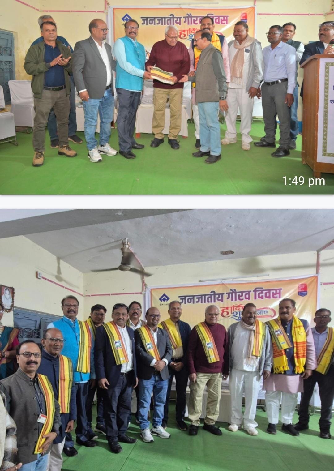 भिलाई 17 नवम्बर वेब वार्ता…भिलाई इस्पात संयत्र एससी/एसटी एम्पलाईज एसोसिएशन, भिलाई पं.क्र-6976 के अध्यक्ष श्री कोमल प्रसाद के अध्यक्षता में डॉ. अम्बेडकर प्रेरणा स्थल सेक्टर-6 में महान जननायक बिरसा मुंडा जी की जयंती समारोह के अवसर पर जनजाति गौरव दिवस का भव्य आयोजन किया गया। मुख्य अतिथि श्री के आर शाह जी के द्वारा बिरसा मुंडा जी के तैलचित्र पर माल्यार्पण एवं पुष्पांजली अर्पित कर कार्यक्रम का शुभारंभ किये।