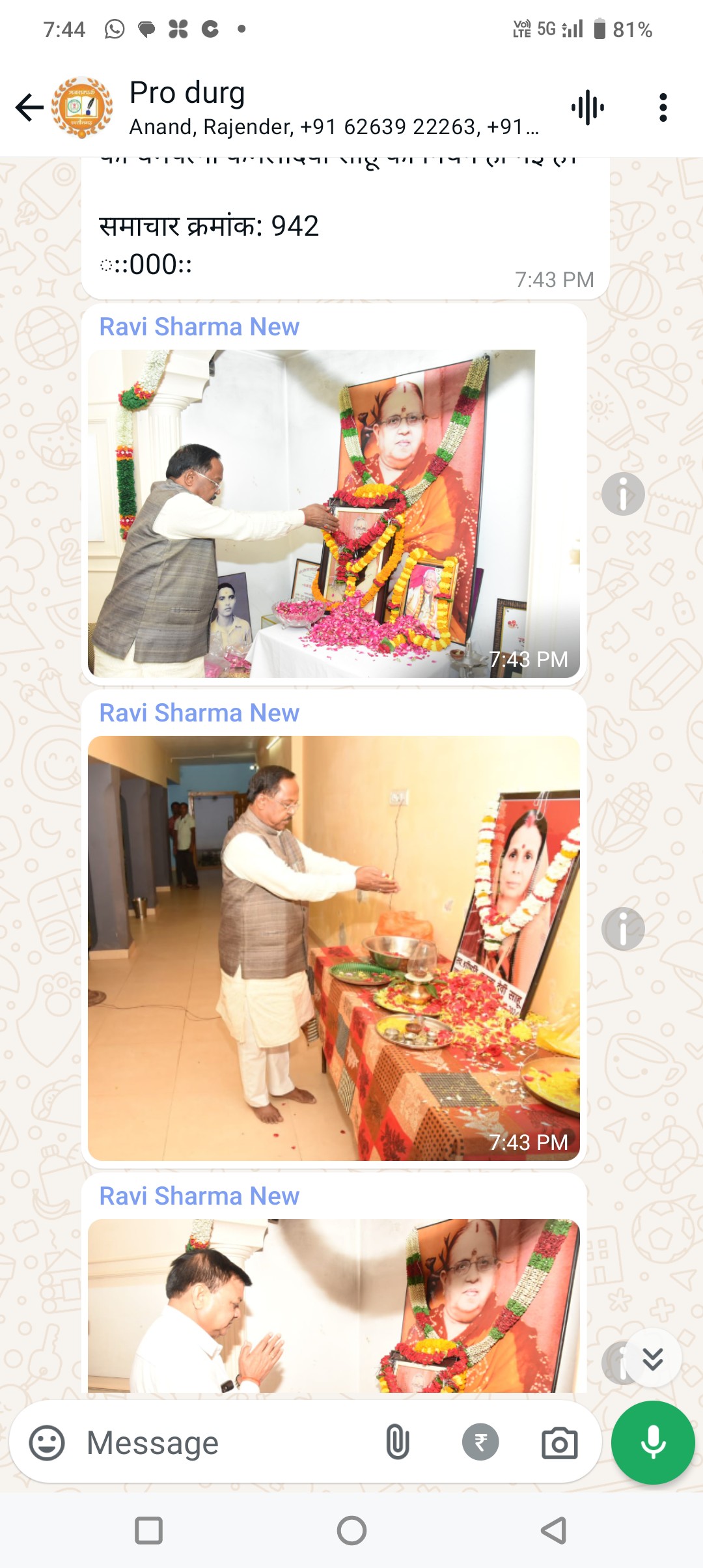 आदिम जाति विकास, अनुसूचित जाति विकास, पिछड़ा वर्ग एवं अल्पसंख्यक विकास, कृषि विकास एवं किसान कल्याण विभाग मंत्री श्री रामविचार नेताम आज ग्राम पाऊवारा पूर्व लोक निर्माण मंत्री श्री ताम्रध्वज साहू के निवास पहुंचे। उन्होंने यहां पर स्व. कमला देवी साहू के छायाचित्र पर पुष्प कुंज अर्पित कर श्रद्धांजलि दी और दिवंगत आत्मा की शांति की कामना की। मंत्री श्री नेताम ने पूर्व मंत्री श्री साहू व उनके परिजनों से मुलाकात कर संवेदना व्यक्त किया। विदित हो कि विगत 09 सितम्बर को पूर्व मंत्री श्री ताम्रध्वज साहू की धर्मपत्नी कमलादेवी साहू की निधन हो गई हैं।