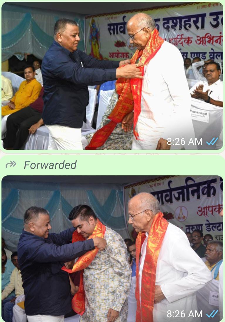 भिलाई ।14 अक्टूबर। वेब वार्ता ।शहरा उत्सव समिति शांति नगर द्वारा विजया दशमी का पर्व बड़े धूम धाम से मनाया गया इस अवसर पर छत्तीसगढ़ प्रदेश के पूर्व गृहमंत्री श्री ताम्रध्वज साहू जी, वैशाली नगर विधानसभा के विधायक श्री रिकेश सेन जी, जिला कांग्रेस अध्यक्ष श्री मुकेश चंद्राकर, समाजसेवी श्री इंद्रजीत सिंह छोटू, प्रदेश कांग्रेस महामंत्री श्री जीतेन्द्र साहू, पार्षद श्री अभिषेक मिश्रा, संतोष मौर्या, विधायक प्रतिनिधि श्री विपिन गिरी, समाजसेवी श्री पवन अग्रवाल जी, सुभाष साव जी सहित शिव दुर्गा हनुमान मंदिर समिति, सियान सदन शांतिनगर, तरुण डेल्टा वेलफेयर एसोशियेशन, के समस्त सदस्य गण उपस्थित थे ।
